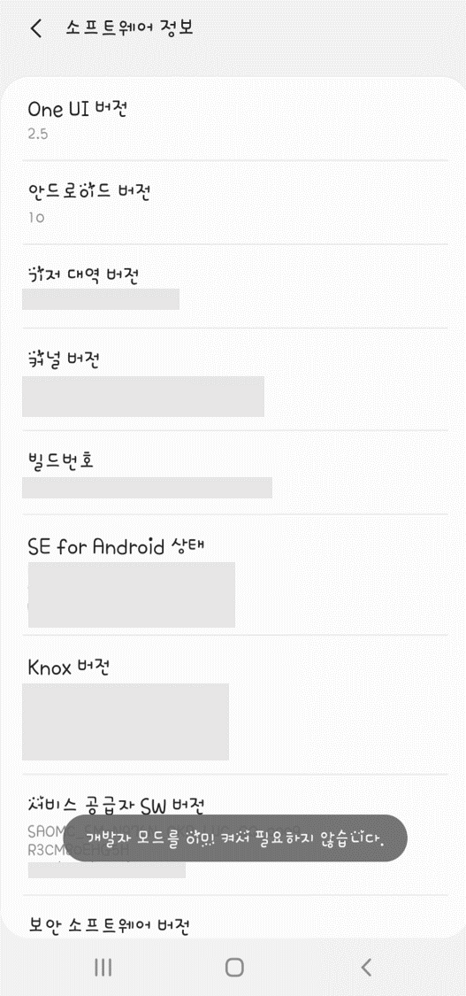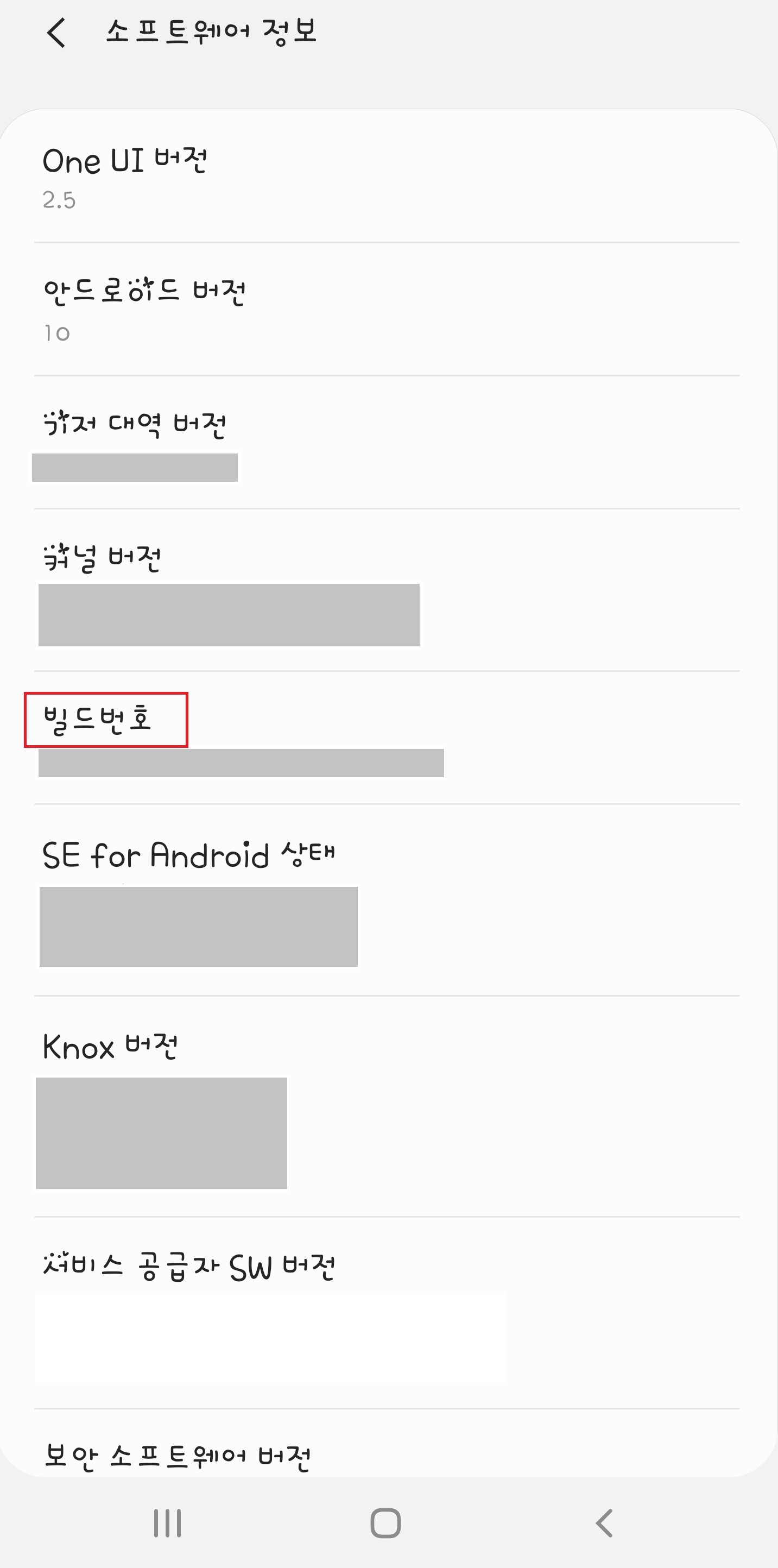 5. 빌드 번호를 연속으로 5회 이상 계속 터치.
