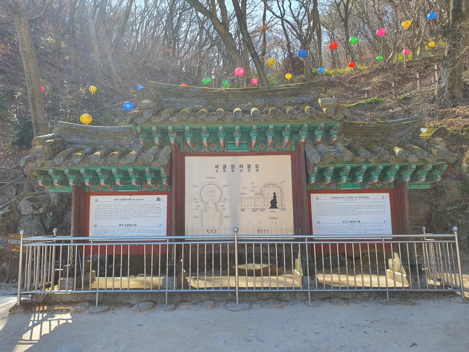 안내판 옆쪽으로 석굴암을 보러 갈 수 있는 계단이 있어요. 이 계단을 오르면 석굴암을 볼 수 있습니다.